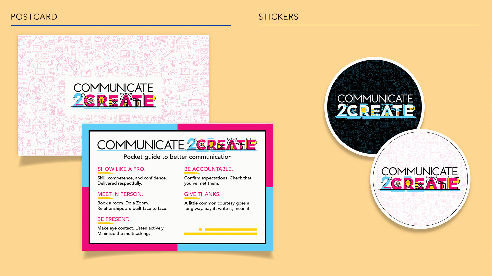 Each year, ICF Next Gov’s creative studio selects a theme to inspire collaboration, creativity, and stronger client relationships. For 2020, I was brought in to design the visual identity for Communicate2Create—a theme focused on empowering creatives to communicate with clarity and purpose.